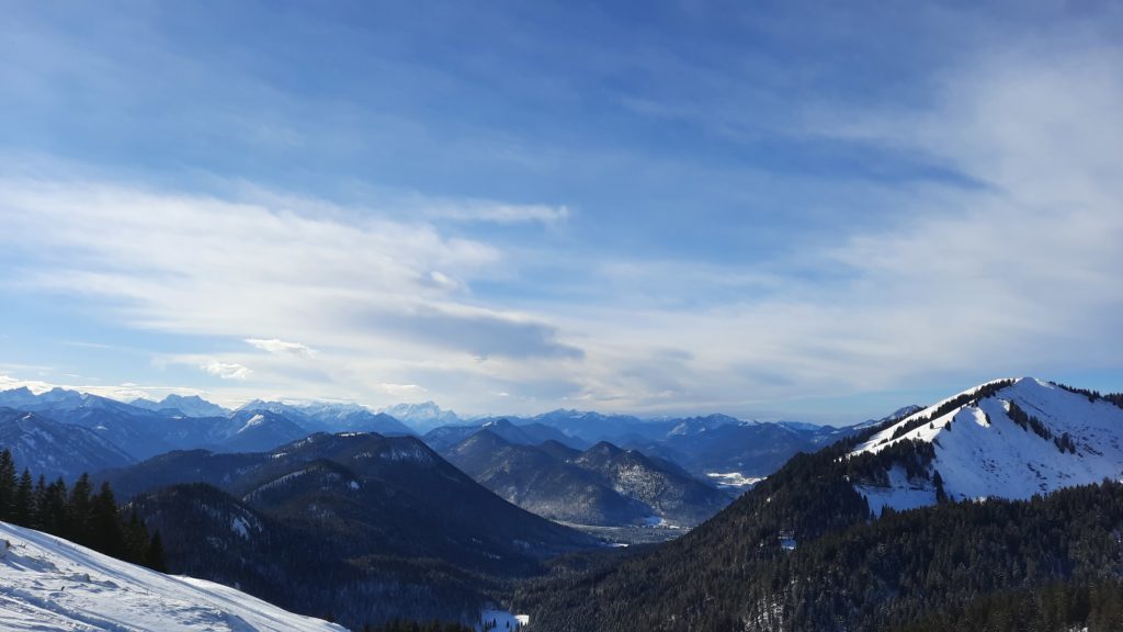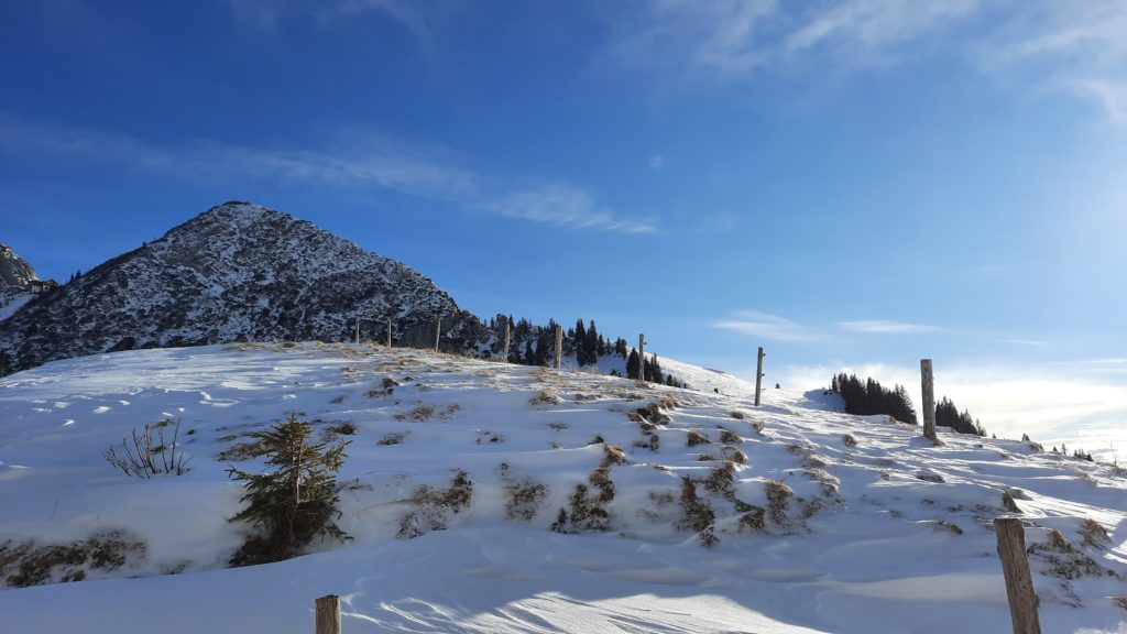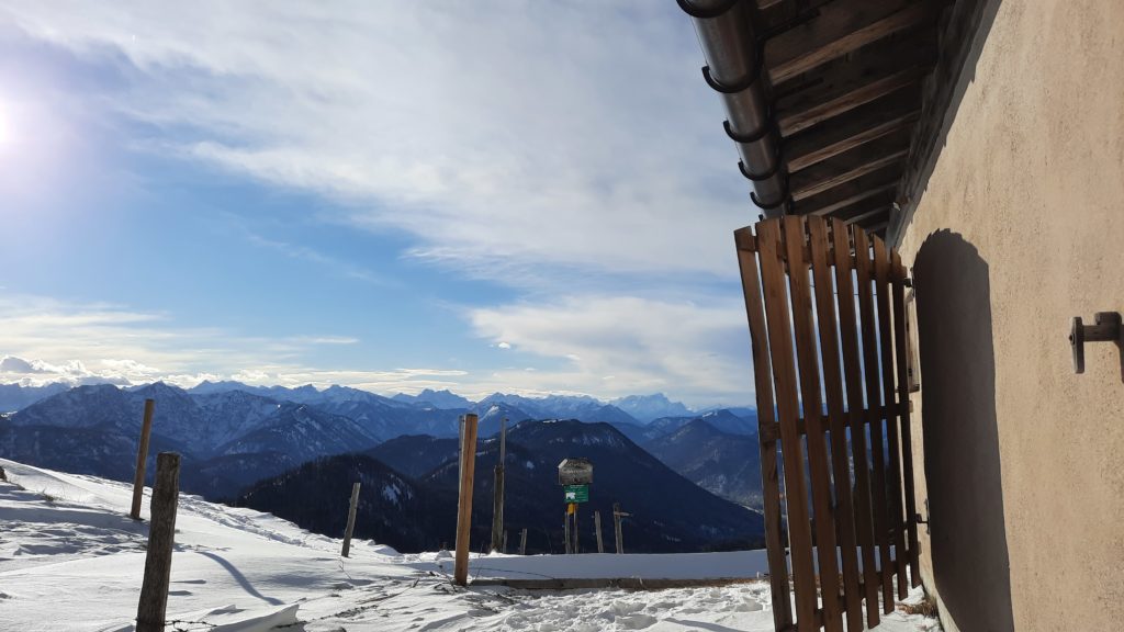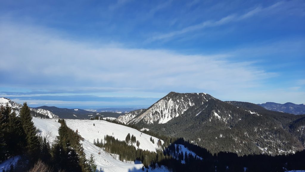Winterwanderung über die Buchsteinhütte zu den Buchsteinalmen. Vom Parkplatz Klamm/Winterstube hinter Wildbad Kreuth erst auf dem Forstweg Richtung Schwarze Tenn. Dann nach links auf die Rodelbahn Richtung Buchsteinhütte. Kurz vor der Hütte zweigt links der Wanderweg Richtung Tegernseer Hütte/Buchsteinalm ab. Sehr schön durch tief verschneite Landschaft bis zur Mulde vor dem Gipfelaufbau. Ab hier wird es dann sehr beschwerlich, wäre besser gewesen, umzukehren. Wir sind links aufgestiegen und dann schräg nach rechts am Steilhang entlang. Man hätte leicht abrutschen können. Bei höherer Schneelage wäre hier Lawinengefahr. Dann oben auf dem Kamm entlang durch tiefen Schnee zu den Almen. Abstieg über den Steilhang hinter den Almen zurück in die Mulde. Hier hätte man auch aufsteigen können, aber sehr steil. Rückweg auf den Anstiegsweg. Unten haben wir dann statt dem Forstweg den Wanderweg auf der anderen Seite des Baches genommen. Alles in allem eine sehr schöne, im unteren Teil auch sonnige Winterwanderung. Wir sind ohne Schneeschuhe, aber mit Grödeln gegangen. Im oberen Teil wären Schneeschuhe aber vorteilhaft gewesen.